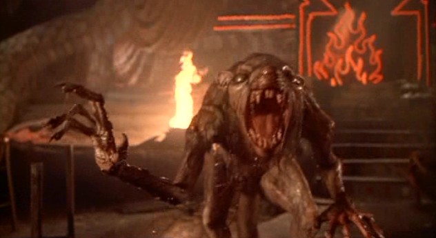 AC: I’m surprised at how down you are on the monster designs. So, they’re not scary, but does that make them not fun? They’re weird and grotesque, a la the EVIL DEAD II demons, and just as cartoony. Why embrace the one but not the other? I can’t really defend the morphing. I’d rather see cheesy time-lapse or gradual scene-to-scene transformations, but it doesn’t completely kill the movie for me. As Adam says, for the time they’re not bad at all. They do the job, they tell the story.