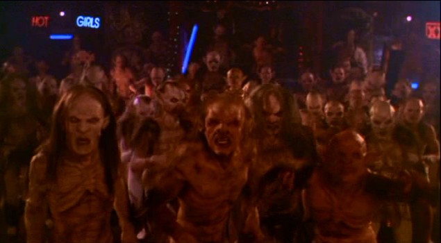 AR: Really? Admittedly, I’m far from an expert on makeup and FX work, but I thought the KNB stuff was pretty good. Again, I’m assuming the post-vampire faces of Williamson and Savini were makeup/masks rather than CGI, but I thought they were pretty cool and creepy. FDTD was made over 15 years ago, so of course some of the effects are going to be dated. But I really thought most of them were pretty good, purely from a technical standpoint. In fact, I had a tough time determining which were CGI and which were practical. I’m gonna be in the minority here, but I thought the effects were the least of the film’s problems.