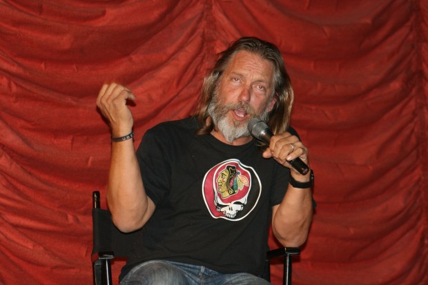 Also, a returning guest this year was director Gary Sherman, who was at the very first Music Box marathon back in 2005. This time out, he brought a newly found print of Death Line (aka Raw Meat), which was his first feature film, released back in 1972. We’ve met Sherman several times over the years at events like this and just think the world of him. He’s got some great stories and just one friendly guy. Coming out to run the Q&A with Sherman was another Chicago director, John McNaughton, director of the infamous Henry: Portrait of a Serial Killer. Like Muro, both of them were in the lounge signing different memorabilia for the fans. And the best part, none of these guys were charging a penny for signatures.