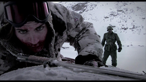 Major kudos has to be given to this cast. Not only are they working in a very cold and unforgiving environment, but before the running time is over, they are all pretty much covered in the red stuff, which had to make it even more difficult to work in those conditions. Keeping in character, keeping a straight face amongst the crazy situations, all in that bidder temperatures, it had to have taken a bunch of real troopers to make their way through it. Ørjan Gamst, who plays the leader of the undead troops, really brings to (undead) life to this new villain, who is an instant villain for the famous monster book. Without a lot to do but stand there looking menacing, he makes every scene he is in count. Gamst also worked as a storyboard artist for the film too! Vegar Hoel plays Martin, our future doctor who is afraid of the site of blood, quickly learns to get over that phobia doing battle with Nazi zombies.