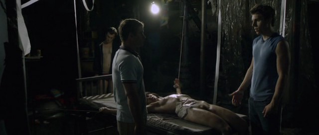 This is quite an interesting movie since it moves back and forth between several types of movies. After JT decides that he wants to keep the girl there to use as his sexual play toy, the tone becomes pretty dark. Real dark. The fact that there is this young girl tied to this bed being repeated raped by JT and the other friend he brings to join the party, really shows the type of people that we are dealing with. Then to make it even stranger, we discover that this girl they’ve found . . . doesn’t die. Discovered by accident, if you could call it that, JT had broken her neck. But she’s still alive. Of course, this doesn’t deter JT from carrying out his plans of sexual conquests. Even when she starts to smell. But we’re never really told what this girl really is? Is she a vampire? A zombie? No clues are given, which I did like that it didn’t fall down any of those typical plots.
