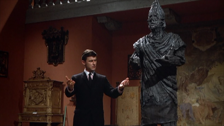 McDowall stars as Arthur Pimm, the assistant director of that museum, who seems to enjoy his work and seems like a normal, well-adjusted person. Of course, once he gets home, immediately striking up a conversation with his mother about his day, almost giggling when he says he brought home a huge jeweled neckless for her to wear. When he goes to put it on her, we see that she is a long-dead corpse. So yeah, normal, well-adjusted person. Pimm discovers that this statue is actually a golem from ancient history, created in the 1500’s. Once he learns how to control it, he loses the last grasp of reality and goes completely mad with delusions of grandeur.
