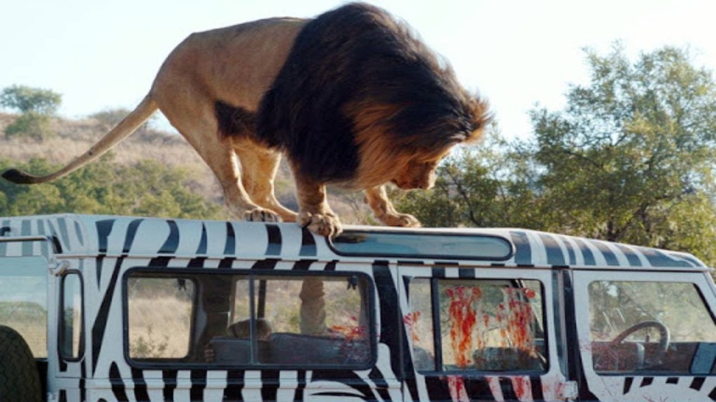 While on a working trip to Africa, Peter Weller sends his two kids and his new wife on one of those wildlife safari rides, which of course, during a pit stop, they get stranded out in the middle of the reserve. To make it worse, there are three lions stalking them, waiting for their next meal to get out of the jeep. The rest of the movie takes place either in the car or right around it. To be honest, I wasn’t expecting much when I started watching this, with a plot this simple, I didn’t see how they were going to keep my interests during the full 90-minute running time. But it works. Director Roodt spends enough time in the beginning setting up the characters, showing the animosity of the teenage daughter feels for her new stepmother, so when they do get trapped out in the wild, things get very tense and very nerve-racking.