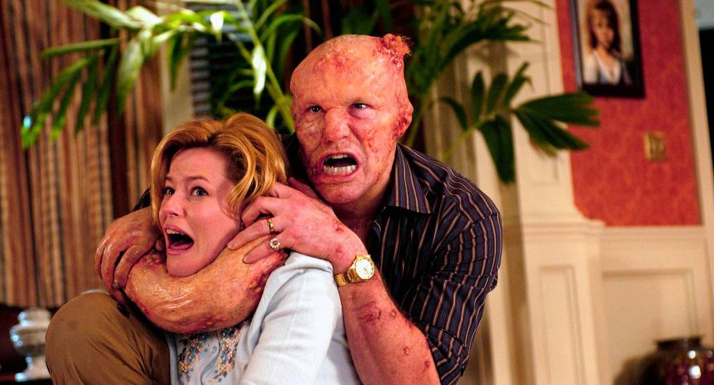 The story is pretty simple, with a meteor landing in the woods near a small southern town. Michael Rooker plays Grant, who happens to be stumbling through those same woods that same night and comes across this rock. Before you know it, he is stuck by this needle-like thing that comes out of the meteor. Over the next few days, Grant starts to change into something quite different. At first it is slow and subtle, which he tries to pass off to his wife, played by Elizabeth Banks, as a little “bug bite”. Before long, he’s stockpiling large quantities of meat in his basement, eventually becoming something like we’ve never seen before. This is when the fans of ‘80s monsters will have a great time. Each time we see Rooker, his character has mutated into something more and more outrageous. It has been way too long since we’ve seen a creature so original than the one he eventually turns into. Then of course, you add in the little slug creatures that get inside of you and turn you into a sort-of connected zombie creature, and you have even more fun!