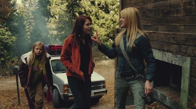 Director by J.S. Cardone does a fantastic job creating some really cool-looking shots of the foggy enshrouded woods, with shrouded figures wandering through them. Very creepy. He sets the mood of the area right away, and really uses the surrounding location to show how scary it can be, especially when it starts to get dark. The cast, led by Heuring, all bring their characters to life, though the story is nothing new, especially when it comes to the teenage daughter, played by Scout Taylor-Compton, where we get the same-old “we’re not going to ‘live’ here, are we?” argument more than a few times. While that gets old really quick, it doesn’t last too long. Her little sister is played by Chloë Grace Moretz, and she really shows how great of an actress she was, showing a lot of talent for someone so young. Just with a look or a glance, she gives off a lot of emotion through her face.