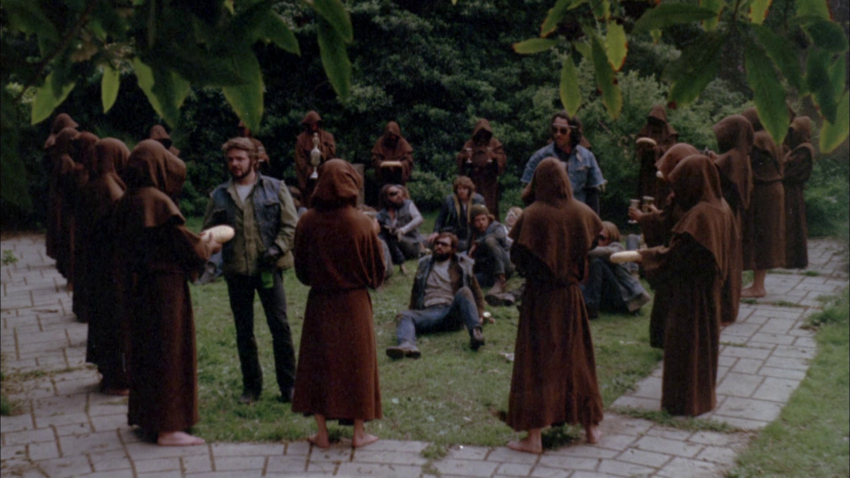 When their mystic member named Tarot tells them of a place where “it’s really at”, they head off to this strange monastery. The robed figures come out and bring bread and wine for the gang, who gladly partake in the communion. But after the gang passes out, the monks start the real fun. Adam’s girlfriend is drawn to the worshipping and does a freaky naked snake dance for the monks, which is a very memorable moment in ‘70s exploitation filmmaking if there ever was one!