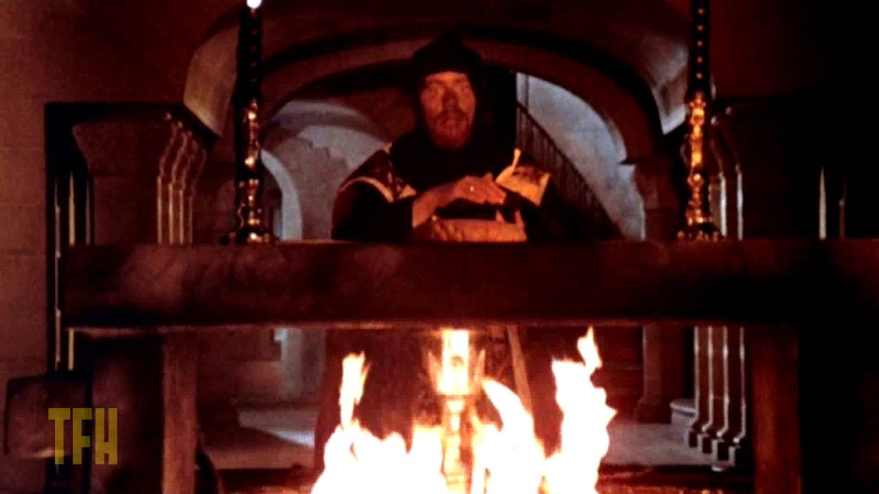 The leader of the monks, simply called One, is played by Severn Darden, though you really can’t see his face, but he’s a very recognizable character actor from that time, especially on TV. He plays the cult leader with all the zest of a Shakespearian actor playing Hamlet!