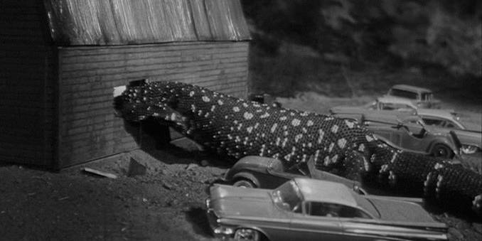 The Giant Gila Monster is one of those films where juvenile delinquents are not as the ‘adults’ think they are but are in fact good kids. Granted, they also look like they’ve already graduated college, but that is beside the point. Add in the fast cars, rock and roll, and a monster and you have a film that is meant to appeal to that market, ones that were usually going to the drive-ins every weekend. So, it was made with that audience in mind. The monster is just a real Gila monster filmed on smaller sets to make it look huge. But it works.