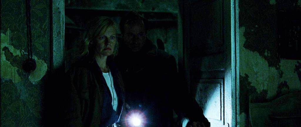 She starts to wander about the house, which looks like the perfect setting for a haunted house, with its filth covered floor and walls, cobwebs all over, and honestly like a place that has been sitting there for 40 years. As she’s looking around, she is scared by seeing a figure, soaking wet, with eyes completely white, standing there. What is even more frightening is that it is her. As she tries to uncover more, she also runs into Nicolai (Karel Roden) at the house. Scared that he might be a robber or worse, not only does she whack with a piece of wood, then tries to escape the house. But for some reason, logic doesn’t seem to work the way it should while they are there. The longer they stay there, the more they piece together their own history, as well as the house.