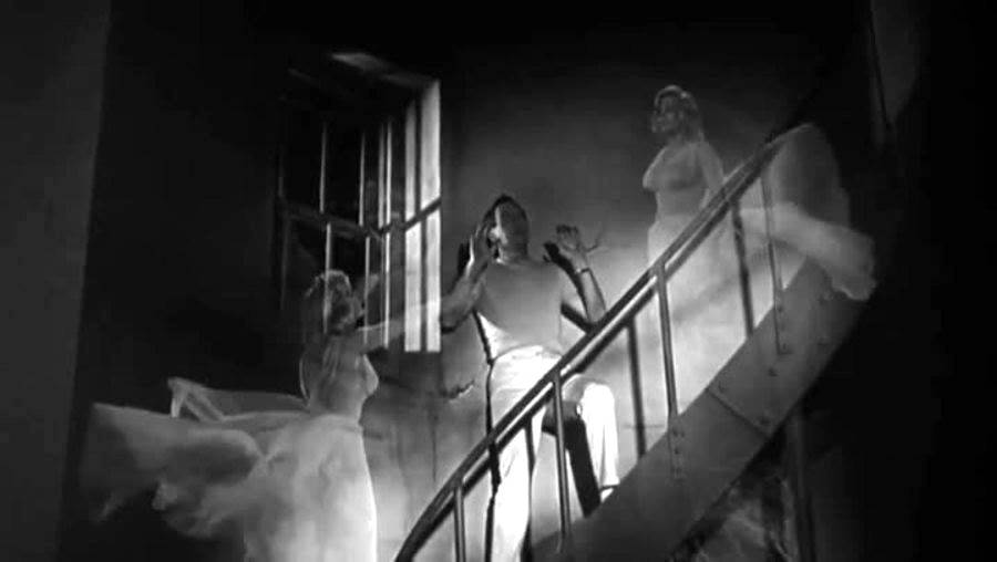 Richard Carlson plays Tom Stewart, a jazz pianist who will be marrying a young (and rich) woman named Meg. The problem is when an old girlfriend of Tom’s shows up on the island resort they are all staying at, demanding he break off the marriage and stay with her. Tom takes Vi, the girlfriend, to a nearby lighthouse, so they can talk. He does his best to tell her that it’s over between them, but Vi won’t have any of it. When she threatens him with blackmail, saying she’ll turn over all his love letters to his fiancée, that is when we start to see a different size of Tom come out. At first, he seemed like he was upfront with Vi, but after the blackmail remark, his expression shows a darker side of him. While at the top of the lighthouse, the railing gives way and Vi starts to fall but catches the railing, hanging there. She calls for Tom to help her, but he stands there, staring. He starts to reach out but then quickly pulls his hand back. Then suddenly, she drops.