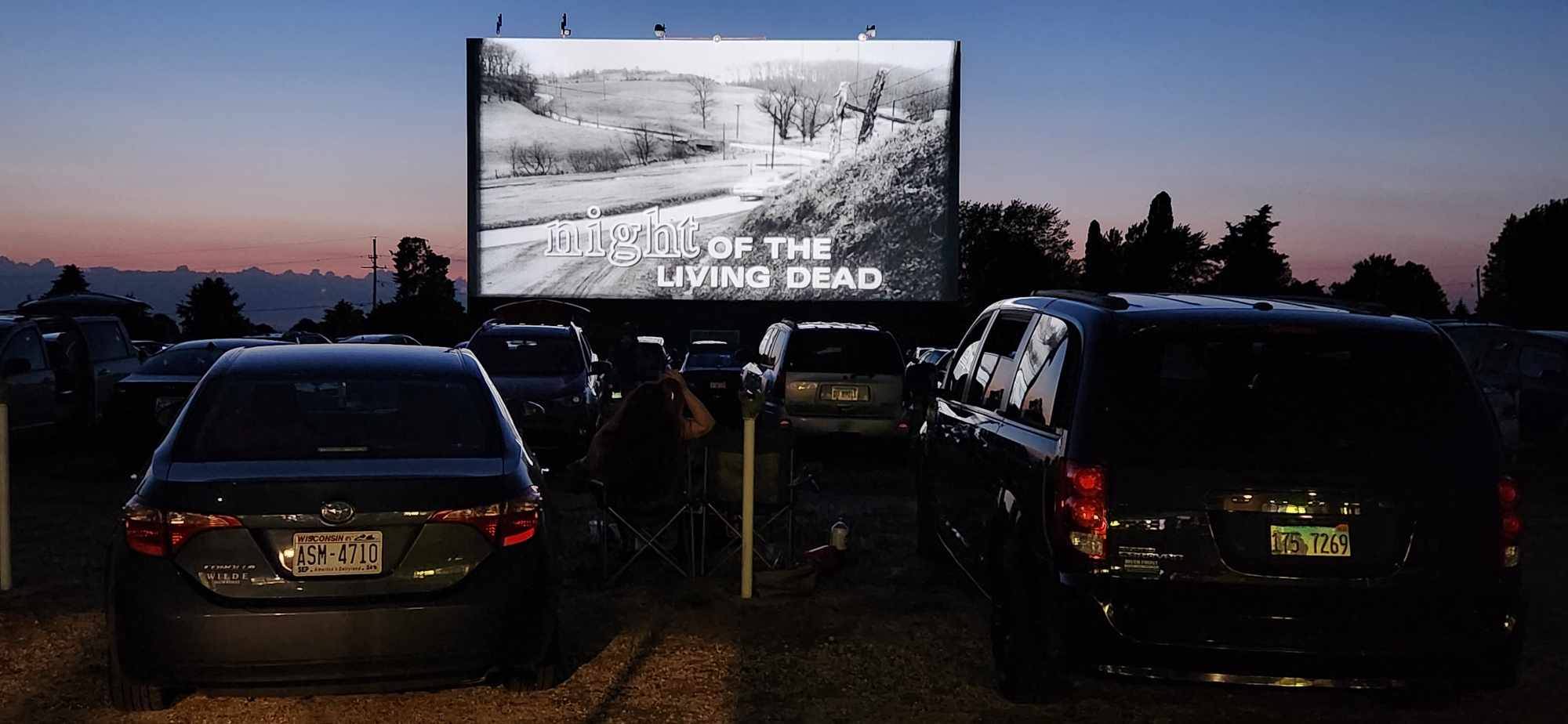 I know that that title is how I felt leaving the Midway Drive-in in the wee hours this morning. I’m going on about 3-4 hours of sleep as I write this, so I apologize for any typos or ramblings that don’t make much sense, but I wanted to get this posted. Yesterday, we were at the Midway Drive-in in Sterling, IL for their Dust to Dawn Romero Fest, where they screened George Romero’s zombie trilogy, Night of the Living Dead (1968), Dawn of the Dead (1978), Day of the Dead (1985), as well as The Crazies (1973) to round out the night. Honestly, I think The Crazies fits perfectly into that series since while they might not be zombies, the themes are pretty close and still very effective.