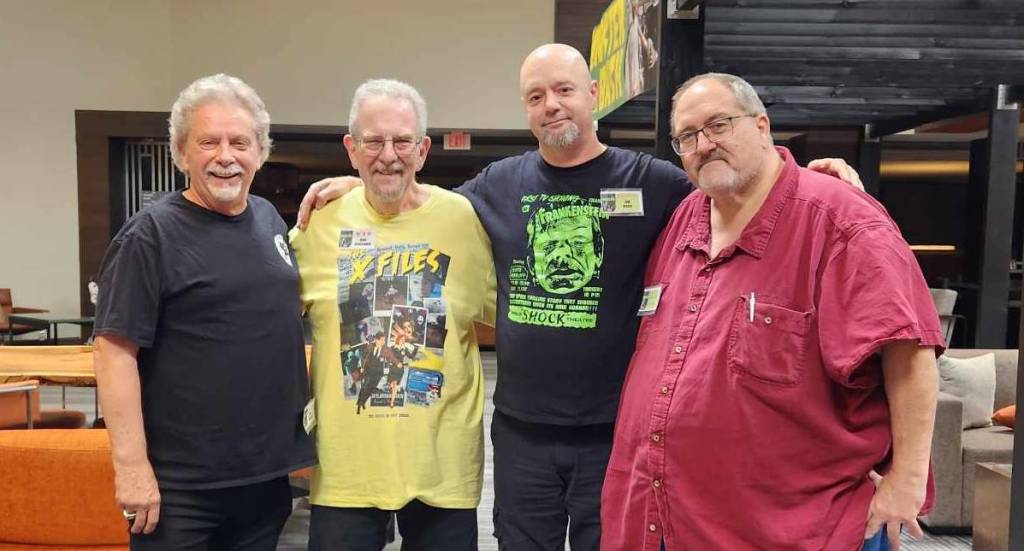 Anthony met a few years ago at Monster Bash and have become great friends over the years. He had just won a Rondo Award for Monster Kid Hall of Fame (which he more than deserves). It was fun talking about conventions with them, both of us knowing the same events and “questionable” promoters! Anthony also runs Monsterama down in Atlanta, which I keep threatening to show up there. I’ve known Richard for quite some time when he was a fellow columnist nominee for the Rondos, after he reached out to me when we were both nominated. Another class act, even though his tastes in horror reference books might need to be improved upon, but we’re working on that! Check out his blog HERE. Richard’s friend Bob, who I first met last year, has worked as a cameraman for longer than I can fathom, and had some incredible stories, even if they were more about music than horror. None the less, both nights were a lot of fun just listening to these guys. It really is times like this that makes conventions so much damn fun! Thank you, guys, for the wonderful conversations and making this show so much fun.