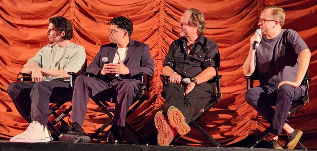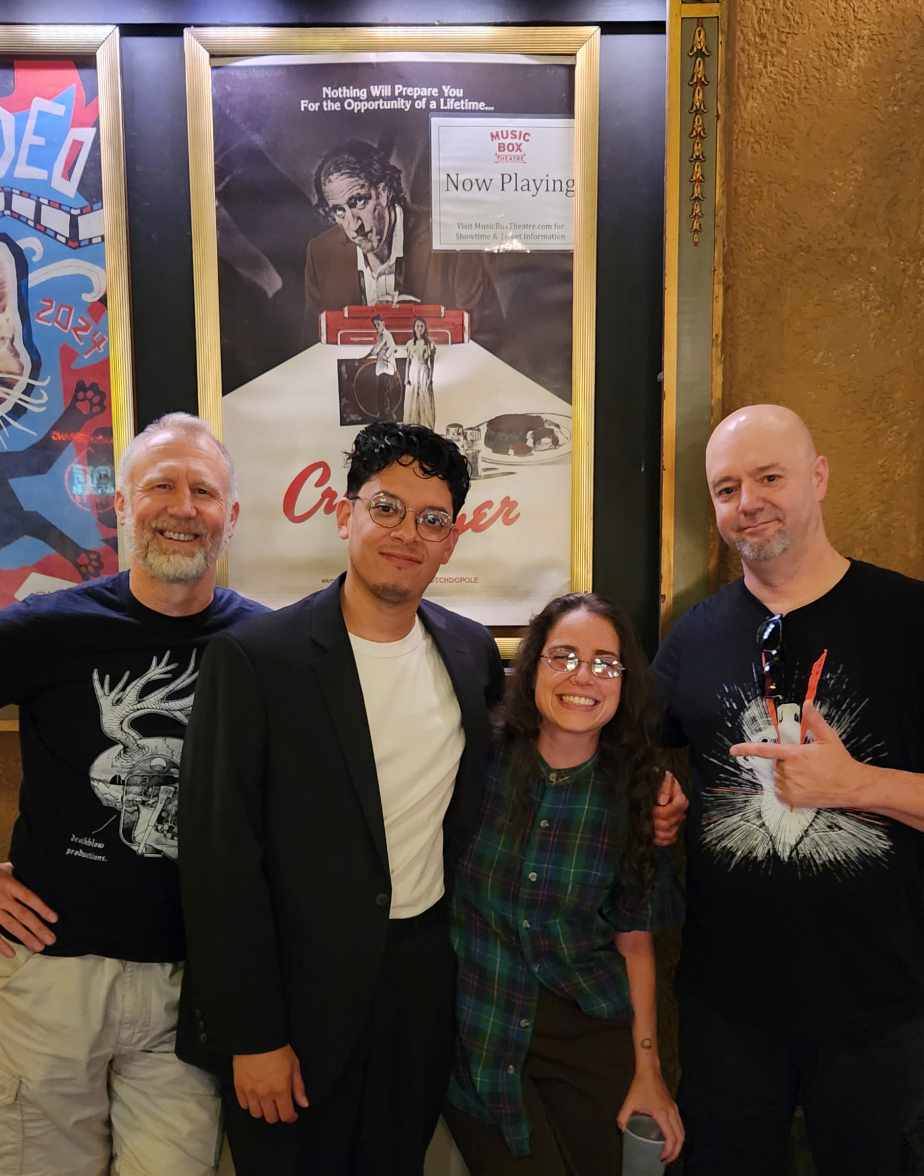 The Music Box Theatre in Chicago was having a special screening of Crumb Catcher (2023), which is playing at the theater all week long. But last night, producers Fessenden and Chadd Harbold, along with director Chris Skotchdopole and actor Rigo Garay were going to be there for a Q&A after the screening. Didn’t matter what film was playing, I was going. Joining in on the experience was, of course, Aaron, as well as our friend and local film critic extraordinaire, Cati Glidewell (The Blonde in Front).
