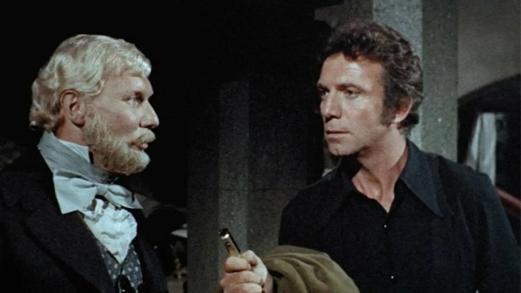 First, while Kinski is made out to be the starring character, he’s only in the film in the very beginning and at the end, playing Edgar Allan Poe. While his is onscreen, he gives us one crazy performer as the writer, as he tells some bar patrons one of his demented tales, before an American journalist shows up that is dying to interview the famous writer. The journalist is played by Anthony Franciosa, best known to horror fans from Dario Argento’s Tenebrae (1982). Just like in Castle, his character is given a wager to spend one night in Castle Blackwood to see if he can survive. Once he arrives, he doesn’t take long before he becomes aware of the castle’s inhabitants. In Castle, the American Alan Foster is played by Georges Rivière, who does an okay job but nothing out of the ordinary. He’s good, just not great. In Web, we have Franciosa who is better, but also goes a bit over the top in some parts, especially at the end. But then when you realize that he’s completely gone mad by the time we get to the end, maybe it was a conscious choice of Franciosa to chew the scenery a bit.