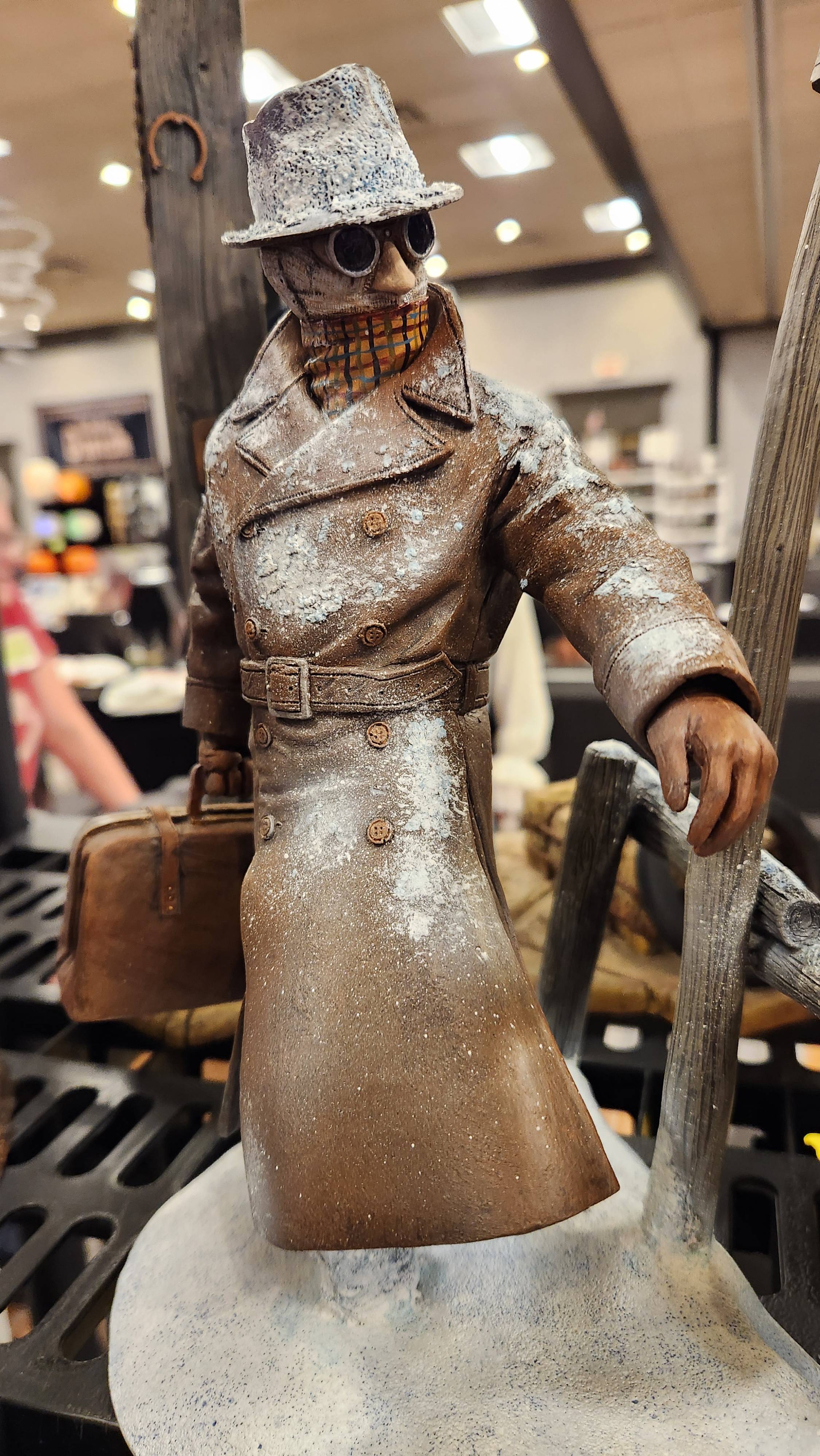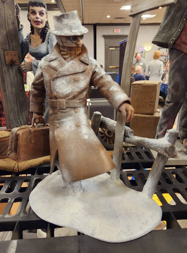 In fact, there were a few pieces that he had that were really impressive, including the little companion piece for I Was a Teenage Werewolf (1957). But besides Frankenstein, the one he had of The Invisible Man was just amazing. That is a character that, like the original Mummy, I’ve always liked the character more than the actual movies. The design and the look of poor Dr. Jack Griffin, with the glasses, the fake nose cover, and the bandages, is just a striking look. The irony of it all is that being you never know what he could look like under all those bandages, when in fact, you won’t see anything! And Scott’s paint job is just as stellar, with the snow covering him, you can almost feel the cold wind blowing!