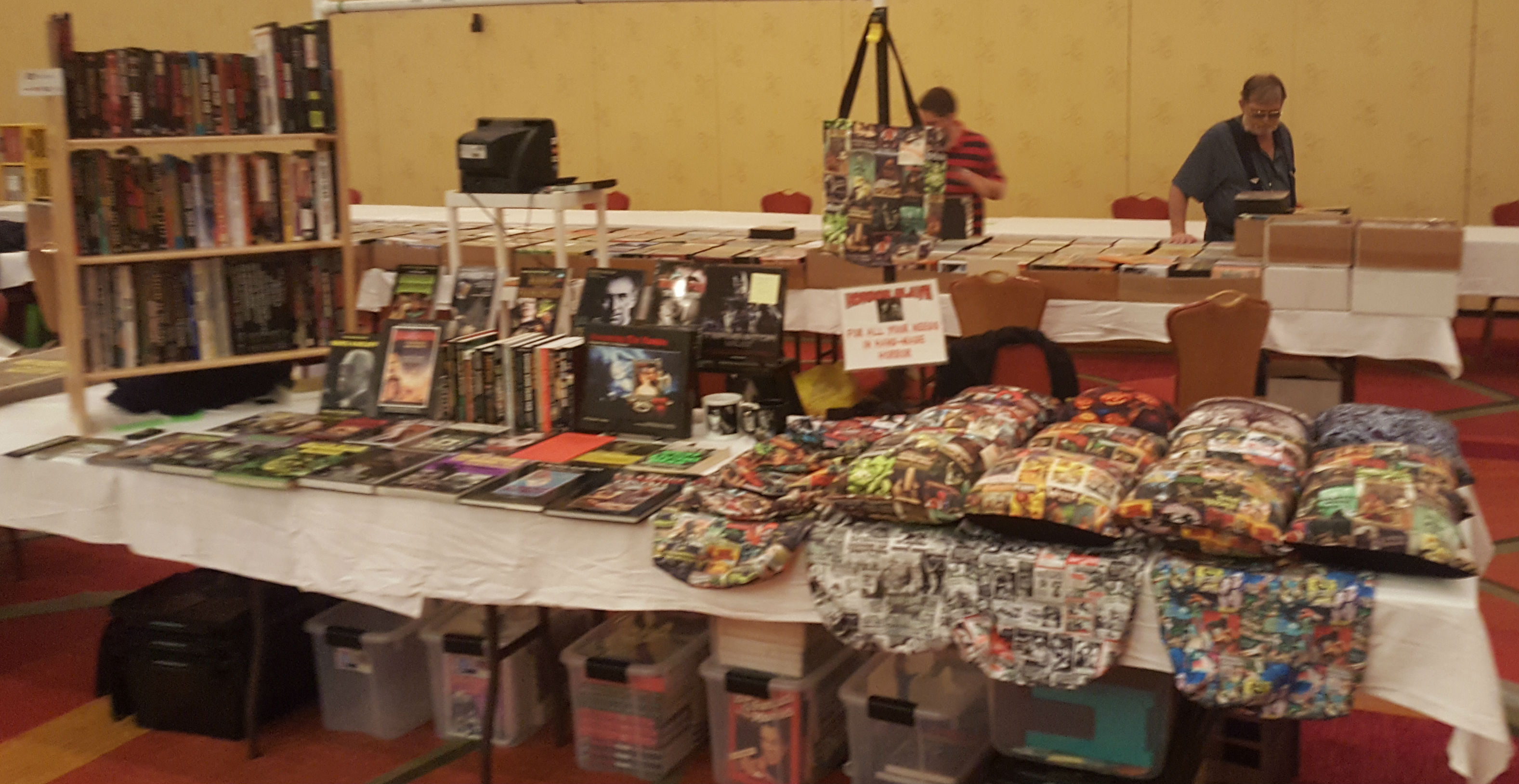 Now, this isn’t a horror-themed convention, but for all genres of film. There is a film room going all weekend, but it usually has silents older classic films, but a nice variety for classic film fans. Every now and then, they’ll program a horror title. In fact, this year, on Thursday night at 10:45pm, they are screening Bert I. Gordon’s Beginning of the End (1957). Every year I’ve attended, I’ve always come back with a few things for my own collection. You’ll see a range of prices from the very expensive to very cheap. You just have to have to take the time to search. While it might not be great for the back and arms, it’s a lot more fun than going through pages and pages on eBay! And you just never know little gem what you’re going to stumble across.
