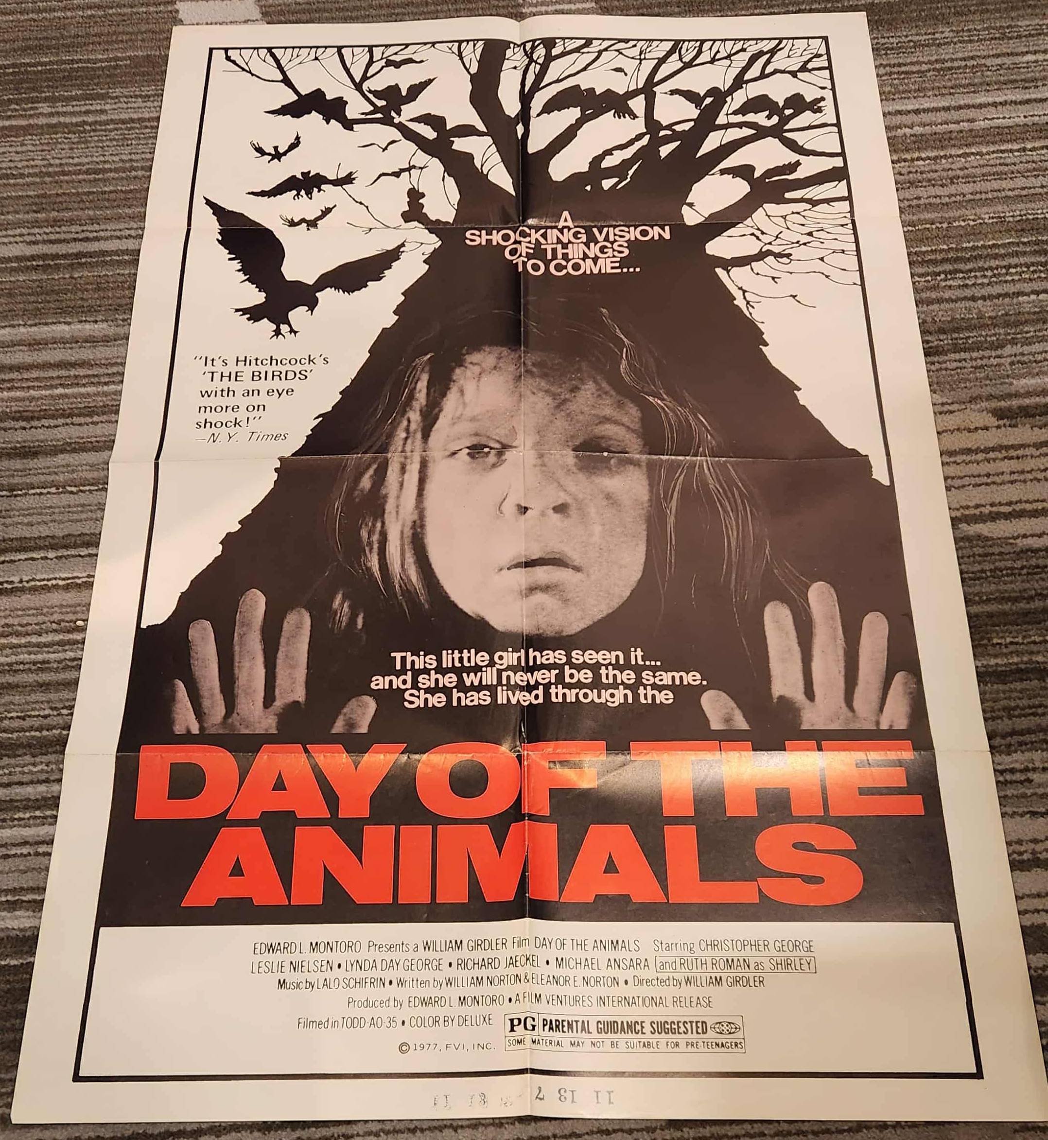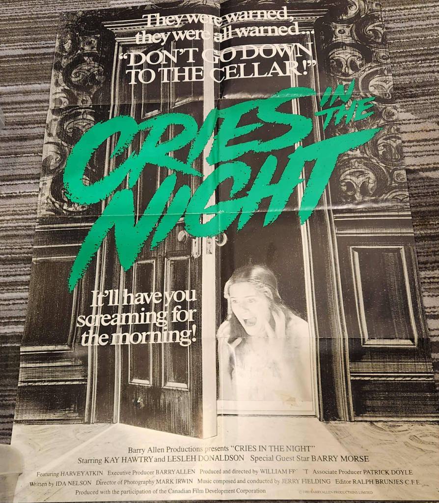 I’m not sure when exactly happened, but like any addiction, you never realize when your “habit” starts to increase more than you thought. Usually set up at the Bash is Mike Orlando from Hollywood Canteen in Toronto and always has an amazing selection of posters there. While browsing his tables, I found a few things that I was interested in, one of which was a half-sheet for Bert I. Gordon’s King Dinosaur (1955). It was a bit high in what I normally would spend on a piece, not that it wasn’t worth it. But Mike also buys some books from us, so it’s not like I’m really “spending” that much as much as trading, right??? Not only did I come home with the King Dinosaur but also found a one-sheet for William Girdler’s Day of the Animals (1977) and a poster for Funeral Home (1980) under the original title Cries in the Night. Hard to pass up.