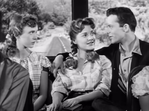 Nath heads off anyway into the darkened night, with the winds fiercely blowing, and the intensity of Miklós Rózsa’s musical score, all combine to make it a frightening journey, one that is too much for Nath before he turns back halfway, getting back to the Morgan’s barn before collapsing in the hay and passing out. The next morning, Nath is now determined more than ever to find out what is about the woods, or more specifically, the red house that is deep within the woods, that scares Pete so much. It even brings Meg into realizing she’s been thinking the same thing. This brings Nath and Meg closer together, even though Nath has a steady girlfriend in Tibby (Judy London), who is jealous the minute Nath starts working at the Morgan farm. Of course, this doesn’t stop her from flirting with a local guy (Rory Calhoun) who seems to be hanging around the edge of the Morgan property.