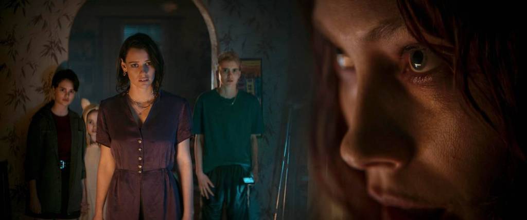 After a brief opening at a cabin in the woods, with a pretty spectacular title sequence, the story moves to the old apartment building, which is being closed down, so there are not that many tenants left. The main characters are Aunt Beth, who apparently has consistently screwed up her life, and now just found out she’s pregnant. She goes to the apartment to see her sister and 3 kids. Ellie, the sister, sends the kids to go get pizza while she talks to Beth.