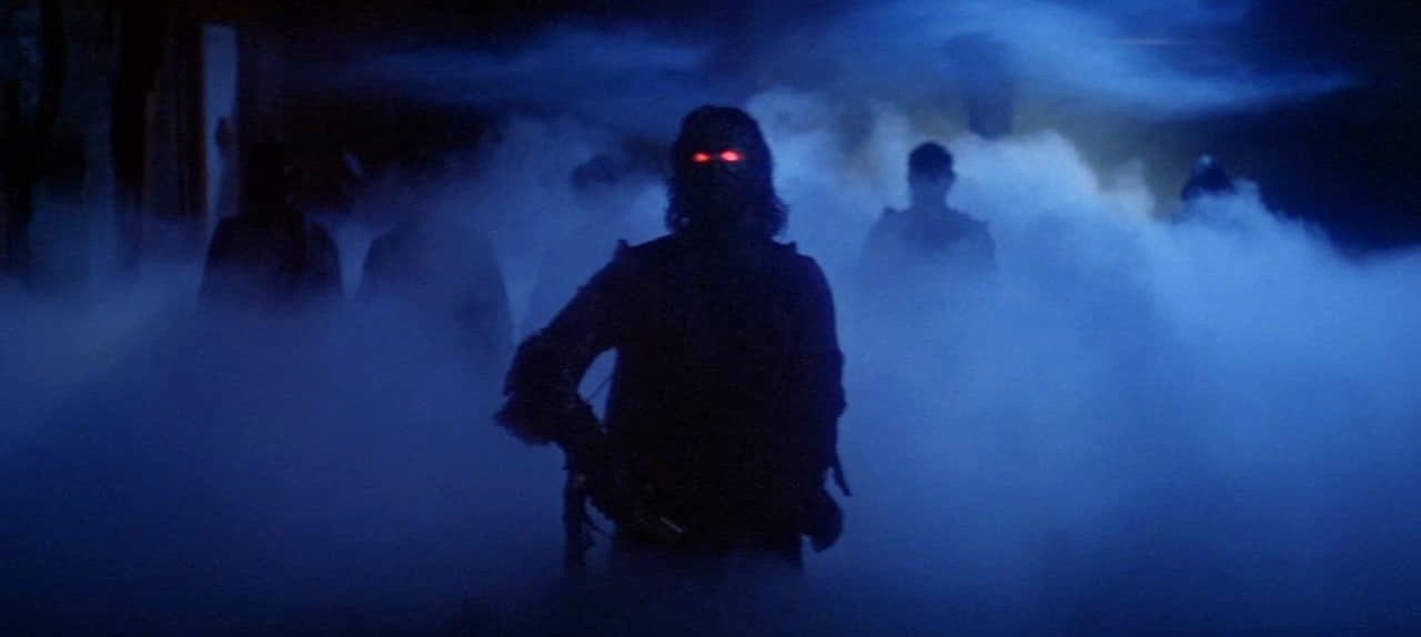 The next feature is one of my favorites of Carpenter, and one of the best ghost story movies ever made! It is The Fog (1980), starring Adrienne Barbeau, Jamie Lee Curtis, Janet Leigh, Tom Atkins, Charles Cyphers, Nancy Loomis, and once again, George ‘Buck’ Flowers! On the 100-year anniversary of the founding of the little seaside town of Antonio Bay, a strange fog makes its way into town, bringing something old and deadly with it.