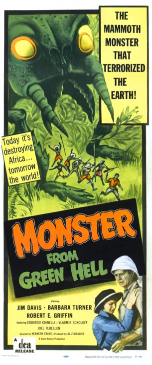 First off, we have GIANT WASP MONSTERS! Like a lot of movies from this era where the movie posters promise something that we don’t really get in the actual film, with Monster from Green Hell, we not only get what is promised on the poster, we get it before the first 10 minutes are up! As a kid, seeing something like a giant wasp head pokes out from behind the bushes and trees and grabs hold of an innocent victim, that would definitely be brought up on the playground the next day at school.