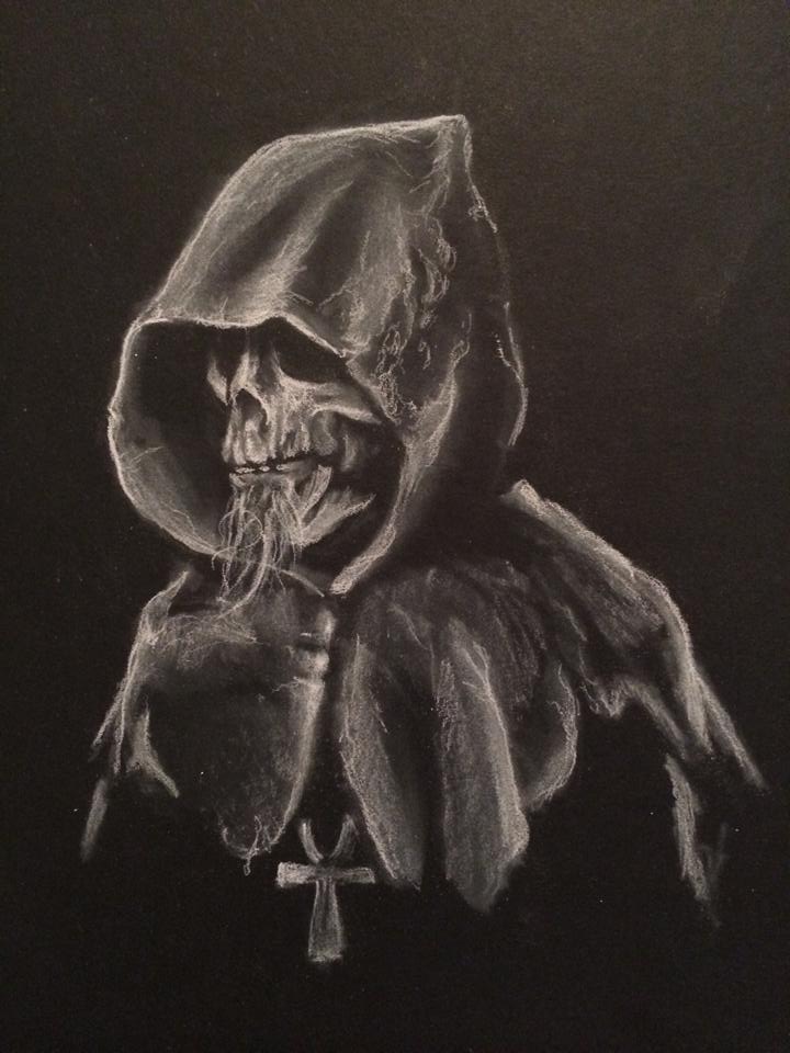 ‘ve known Don England for many years, first meeting him at one of the early Cinema Wasteland shows. We’ve become good friends since then and see each other several times a year at different conventions. He is one incredibly talented artist, and one that still does it the old fashion way…with his hand. Sure, using the computer to do your coloring and all that can look pretty impressive, and nothing against it, but honestly, for me personally, there is something special about a good old fashion pen and ink drawing. But lately Don has been doing some work with charcoal that has once again impressed the hell out of me. One of the first ones that he did recently was a Blind Dead one, which I immediately knew I had to have for my collection and purchased it right away. Since then, he has continued to crank out these little masterpieces and always make me envious of his talent.