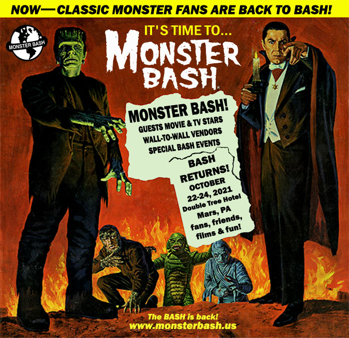 After having another excellent time at the Cinevent Classic Film Convention’s 50th Anniversary show, we are now getting ready for the next stop in the Kryptic Anniversary Tour, which will be the Monster Bash Conference. This show is taking place in Mars, PA, from June 22nd to the 24th and continues to be one of our favorite stops on our annual tours. Now only does it have one of the best dealer rooms around that is tempting every single dollar I make at my own table, but there is so much stuff to do throughout the whole weekend. There’s plenty of panels and Q&A’s with the guests and other scholarly types, such as Victoria Price, Brandy Gorcey, Joyce Meadows, Janina Faye, Sharyn Moffett, Kris Yeaworth, Gregory Mank, Tom Weaver, and many more.